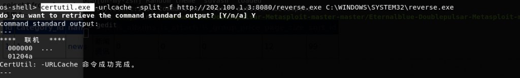那么,我们可以使用certutil.exe,一般看到成功完成就代表下载下来了,所以我就不dir来查看了